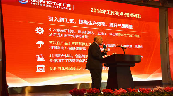 1月19日,“廣泰集團(tuán)2018年度工作總結(jié)暨表彰大會(huì)”于集團(tuán)研發(fā)大樓三樓會(huì)議廳召開,廣泰集團(tuán)董事長(zhǎng)李光太、副董事長(zhǎng)郭少平、集團(tuán)總經(jīng)理李文軒及廣泰集團(tuán)各中心、各事業(yè)部的領(lǐng)導(dǎo)干部和股份公司獲表彰員工共計(jì)500余人參會(huì)。廣泰集團(tuán)生產(chǎn)一廠、生產(chǎn)二廠、羊亭特車、中卓時(shí)代、山鷹報(bào)警、…