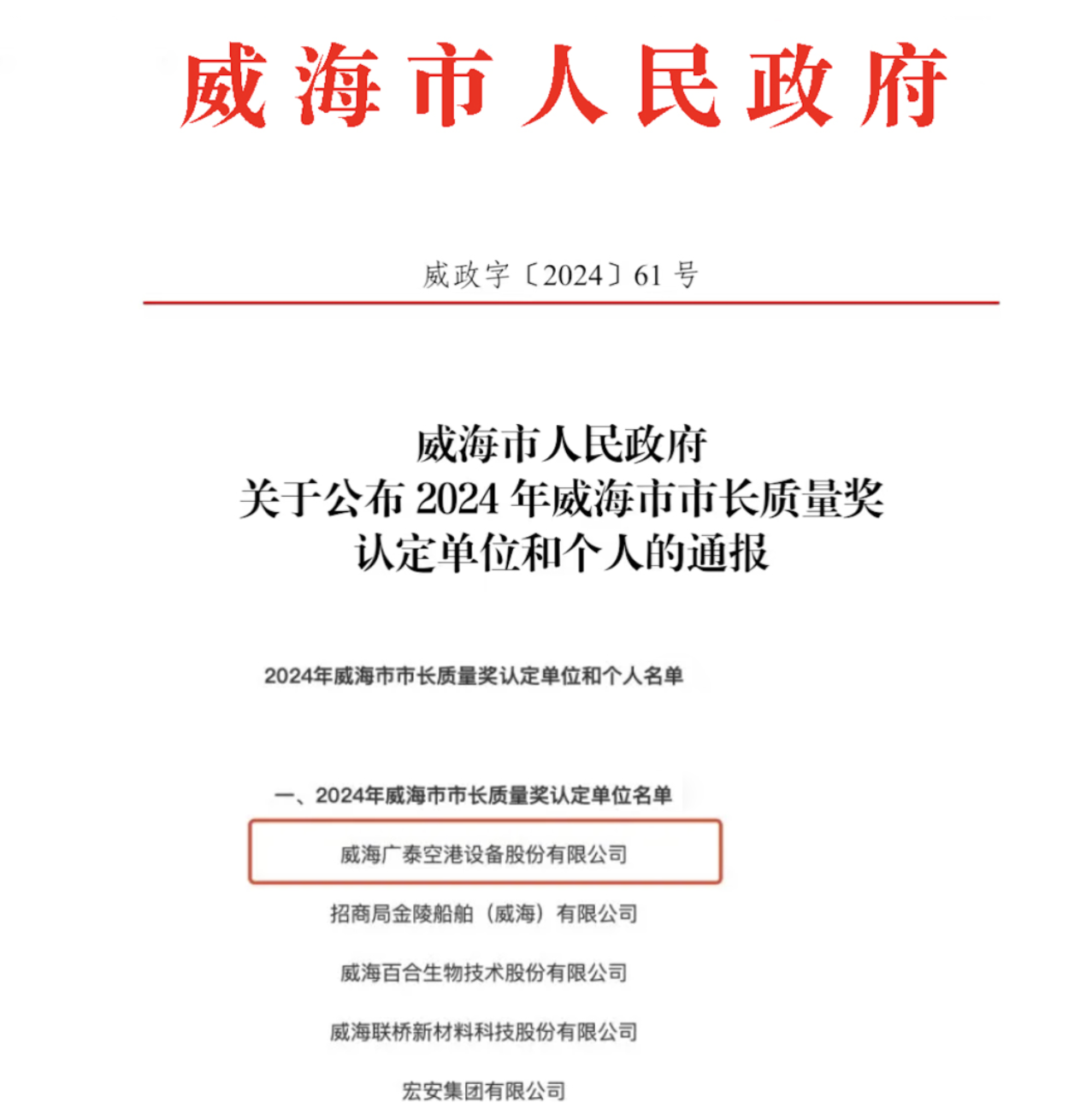 近期,由威海市質量強市及品牌戰略推進工作領導小組辦公室印發通知,組織開展了2024年度威海市市長質量獎認定工作。經過激烈的角逐,威海廣泰空港設備股份有限公司(以下簡稱“威海廣泰”)在眾多競爭者中脫穎而出,成功榮獲2024年度威海市市長質量獎。此項殊榮不僅是對威海廣泰產品…