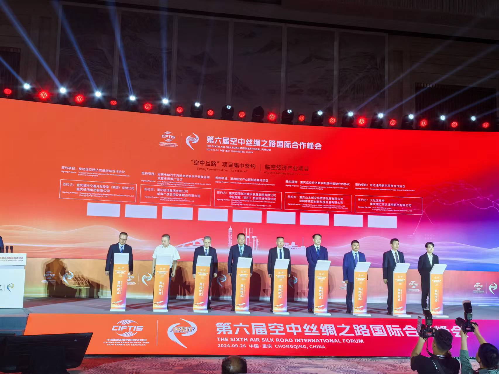 9月26日,威海廣泰空港設備股份有限公司(以下簡稱:“威海廣泰”)應邀參加在重慶舉辦的第六屆“空中絲綢之路”國際合作峰會(ASRIF),營銷中心總經理羅瑜代表公司出席并與重慶機場集團有限公司(以下簡稱:重慶機場集團)黨委委員、副總經理熊德智共同簽署了空側電動汽車充換電站…